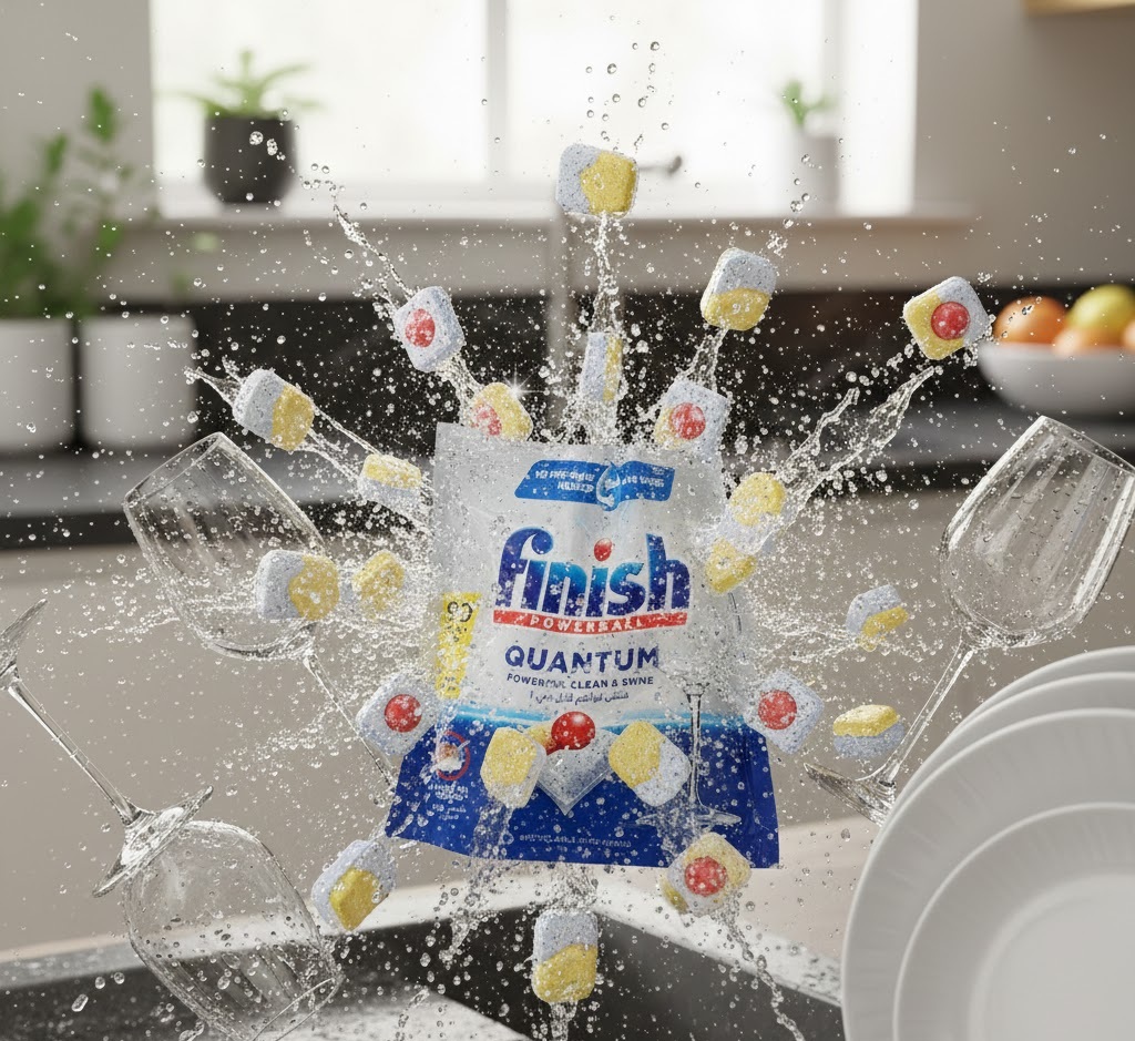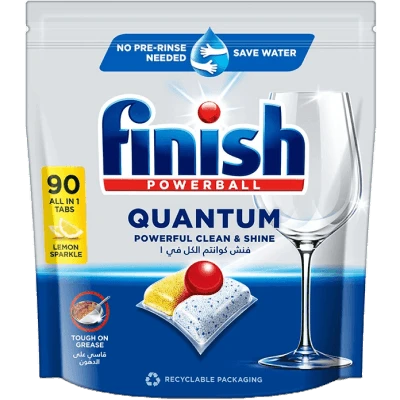 “ارتقِ بنظامك المنزلي إلى آفاق جديدة من النظافة مع فينيش كوانتوم (Finish Quantum)، القمة في تكنولوجيا غسيل الأطباق. صُممت أقراص كوانتوم بتركيبة ثلاثية المفعول (Triple Action) تجمع بين المسحوق القوي لإزالة البقايا، والجل المركز لتفتيت الدهون، وكرة ‘الباوربول’ السائلة التي تمنح أوانيك لمعاناً ماسياً لا يضاهى.